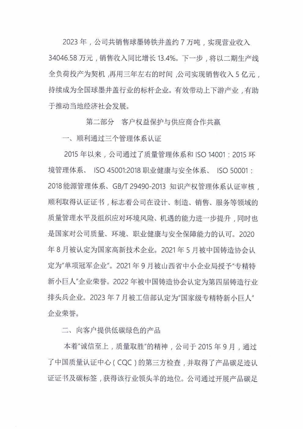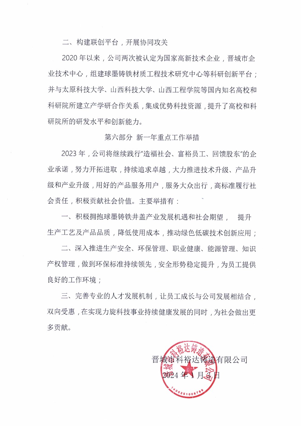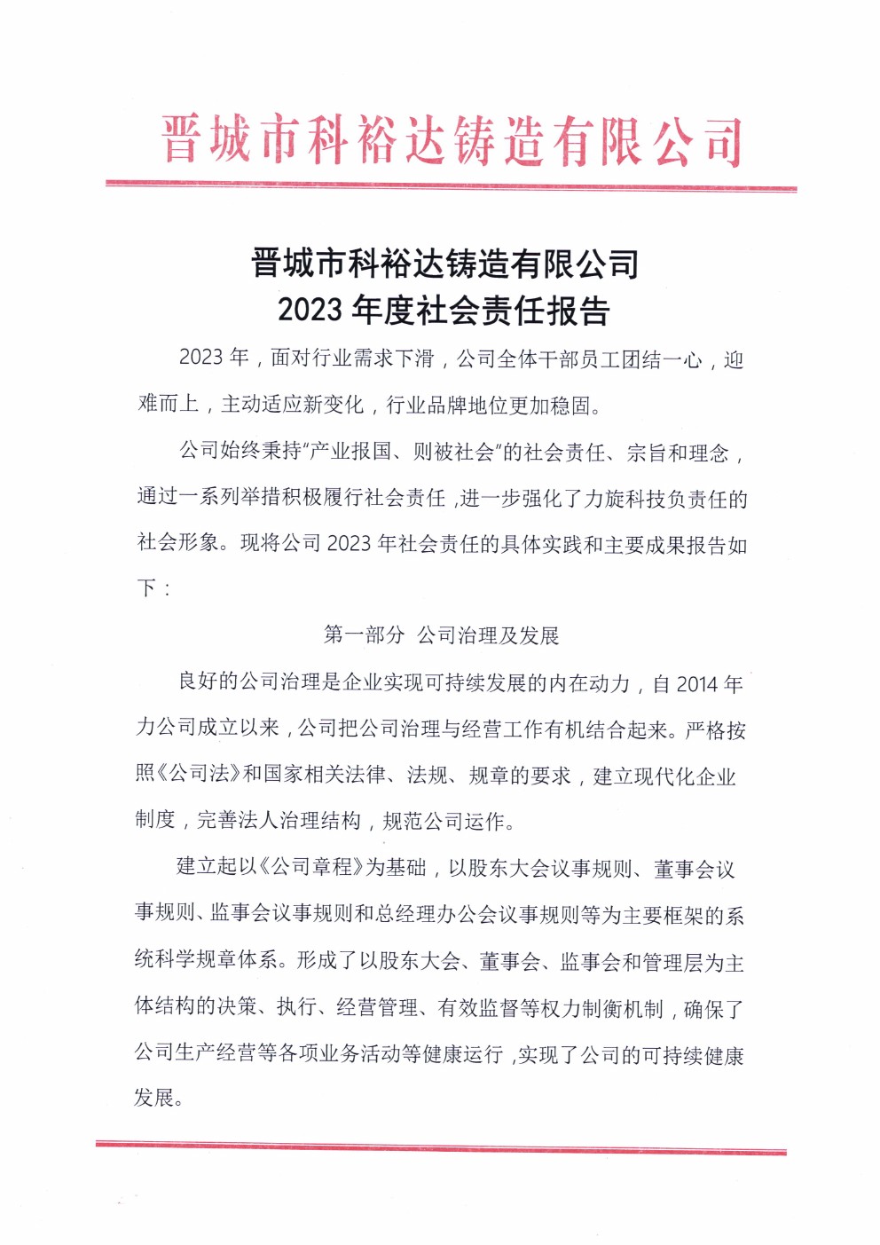 晉城市科裕達(dá)鑄造有限公司2023年度社會(huì)責(zé)任報(bào)告