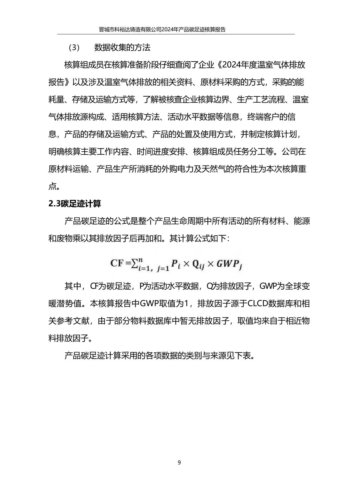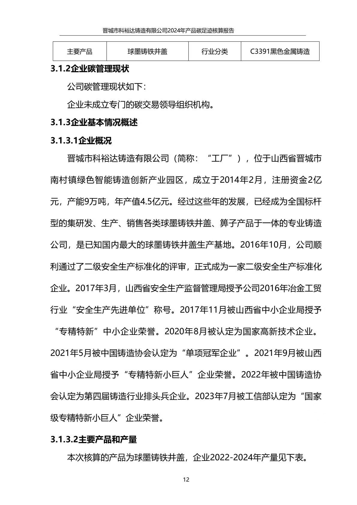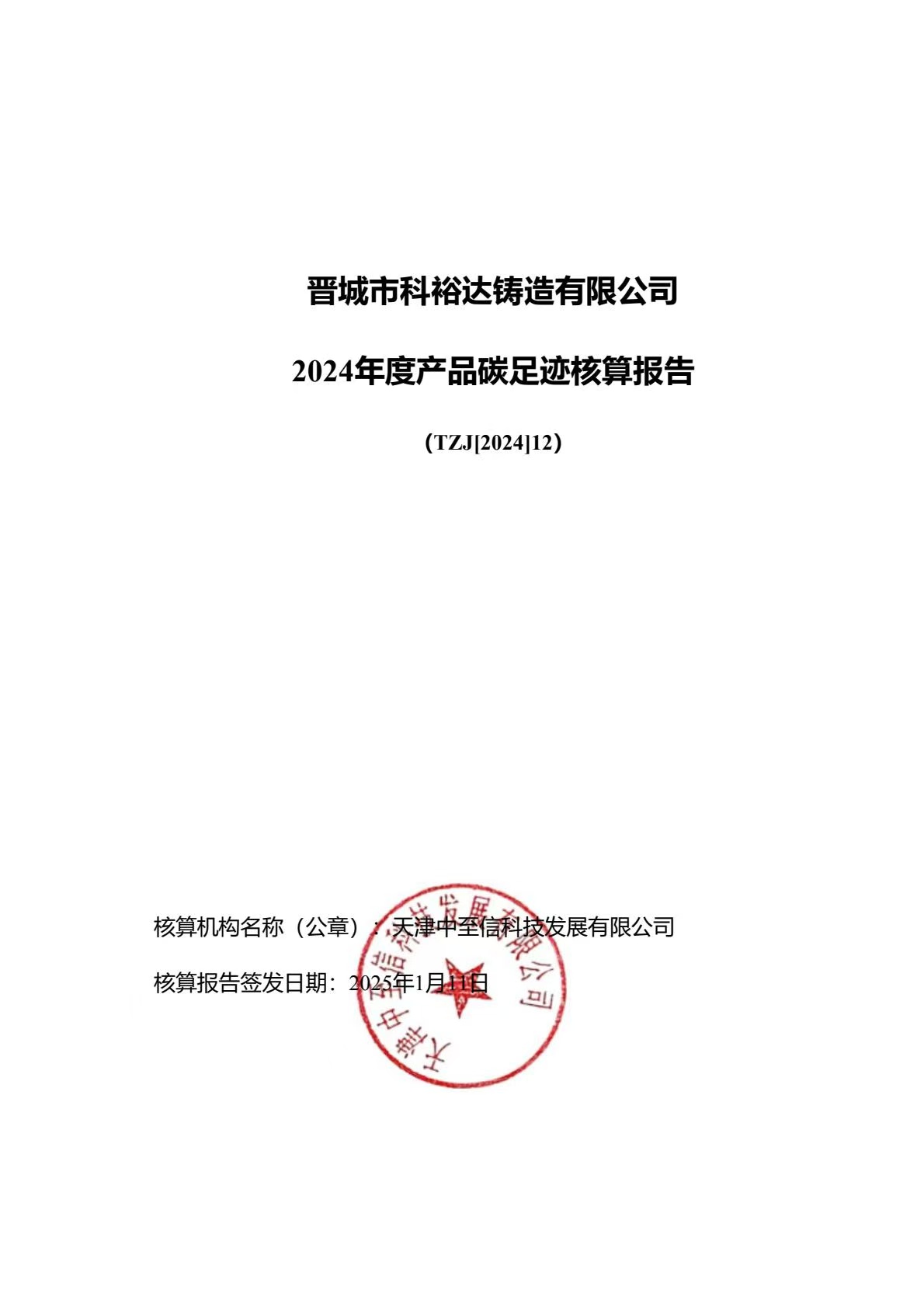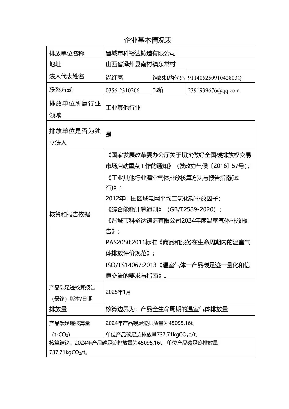 晉城市科裕達鑄造有限公司碳足跡報告